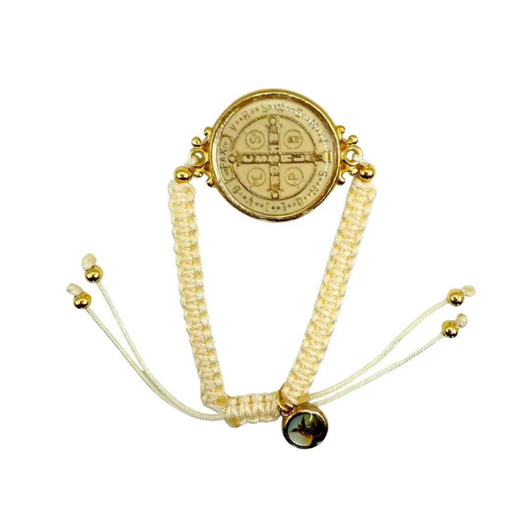 Pulsera tejida a mano, con piedra encapsulada y acrílico. Hilo semi piel.